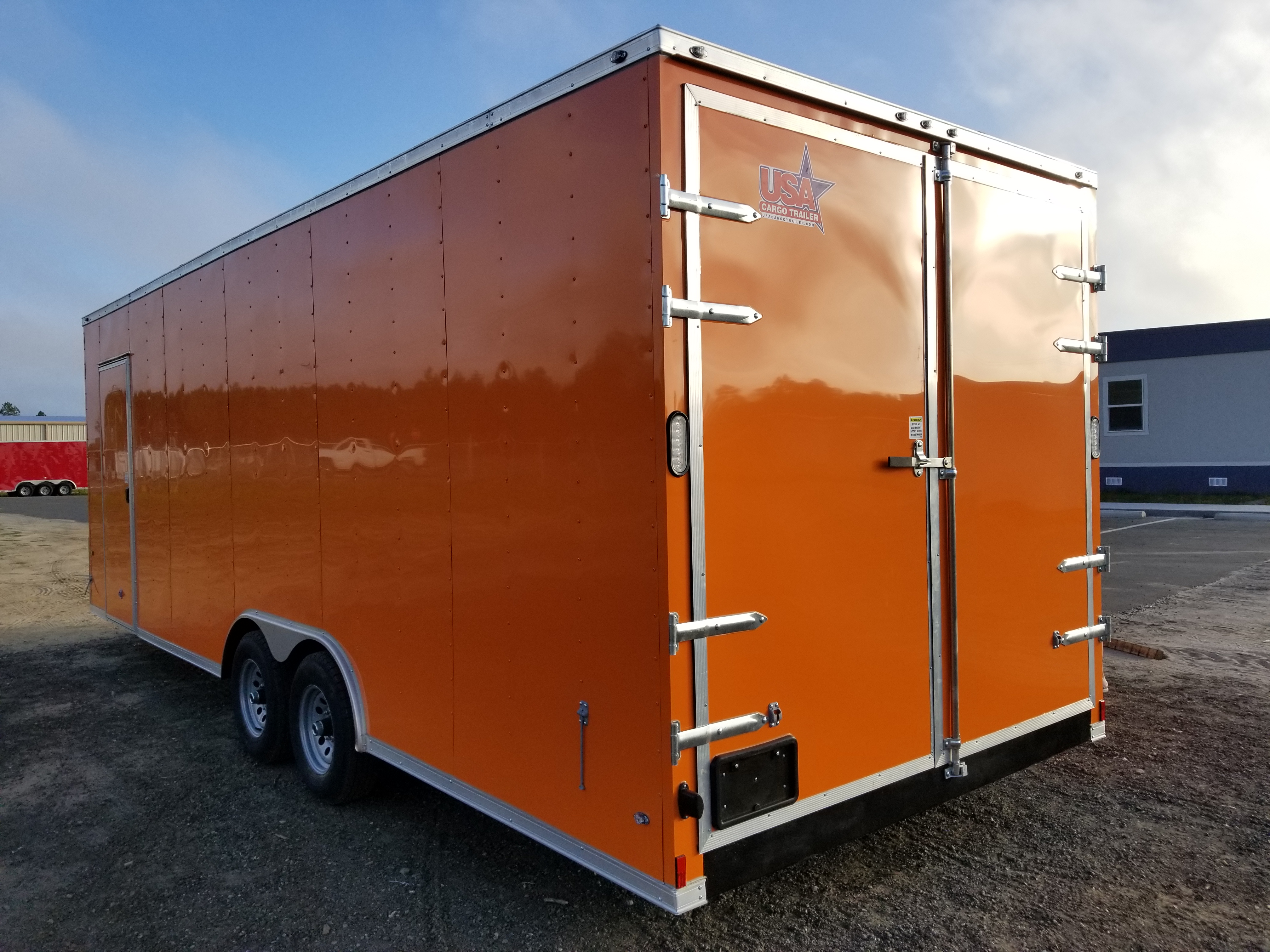 8.5x22 foot trailers, 7 ft. 6" interior height, concession door, barn doors, .030 orange.