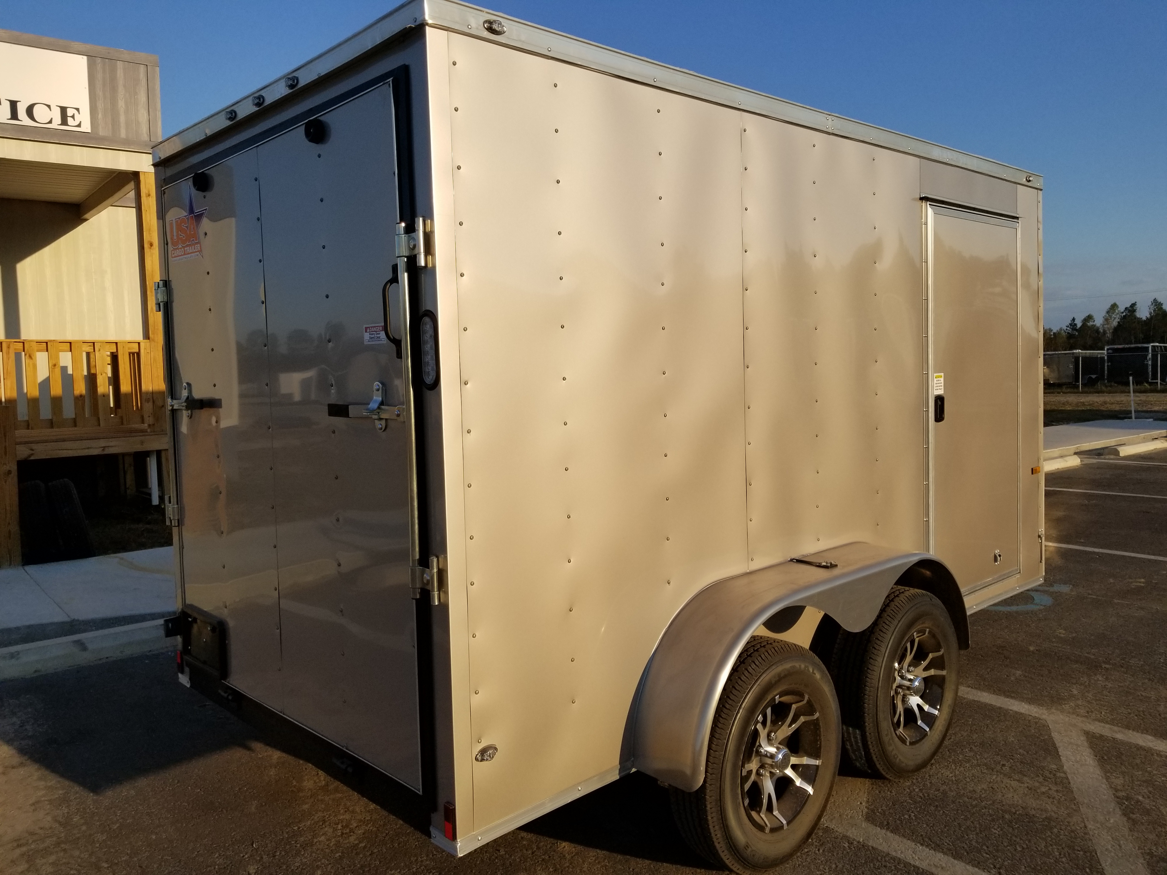 Arizona beige 6x12 tandem cargo trailer. USA Cargo Trailer has 100's of options for your custom build.